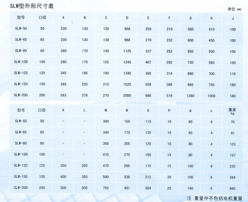 SLW型外形尺寸表
